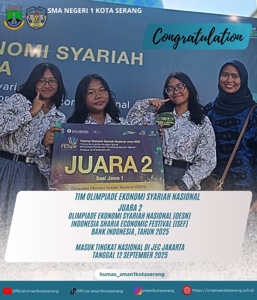 PRESTASI AKADEMIK DAN NON AKADEMIK SISWA-SISWI SMAN 1 KOTA SERANG BULAN SEPTEMBER 2025 Tinggalkan Komentar / Uncategorized / Oleh CyberCaptain Smansa