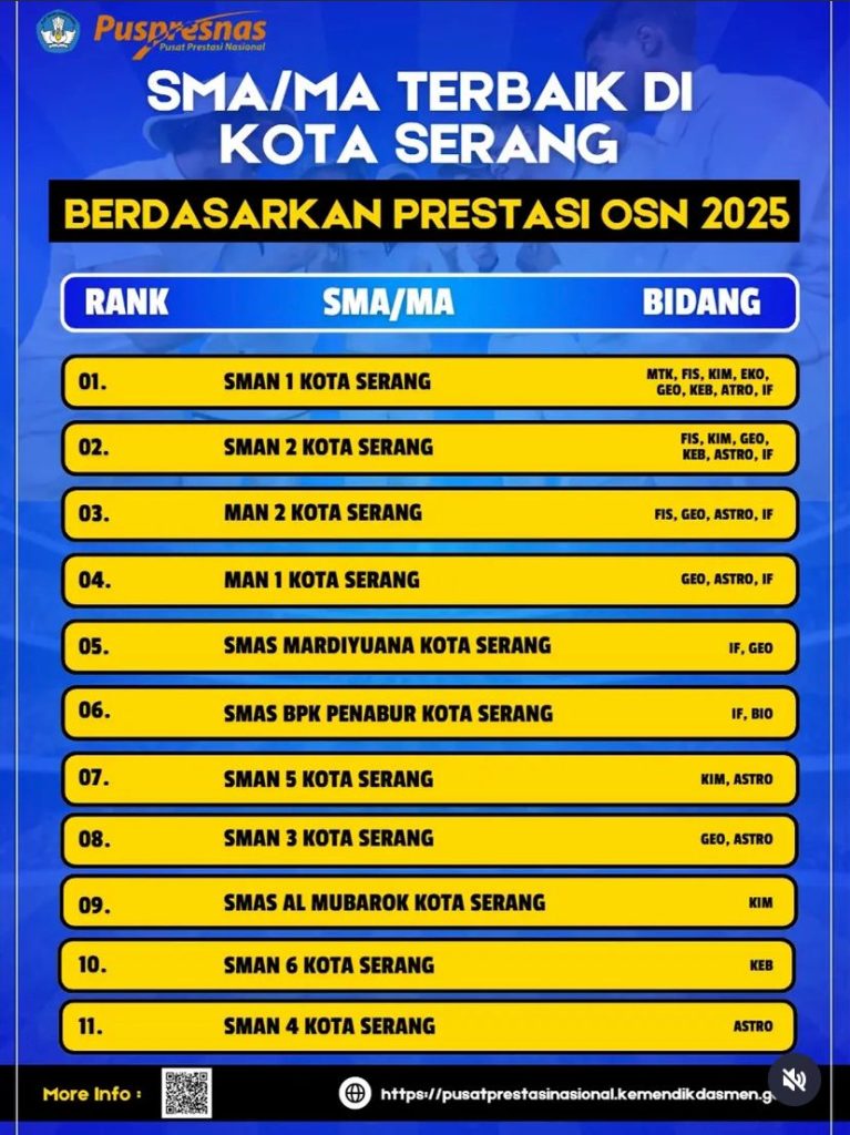 PRESTASI SMAN 1 KOTA SERANG DI BULAN APRIL 2026 Tinggalkan Komentar / Uncategorized / Oleh CyberCaptain Smansa
